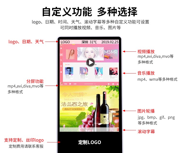 原裝進(jìn)口品牌LED高清顯示面板制作,畫質(zhì)顯示更清晰,功耗更低。